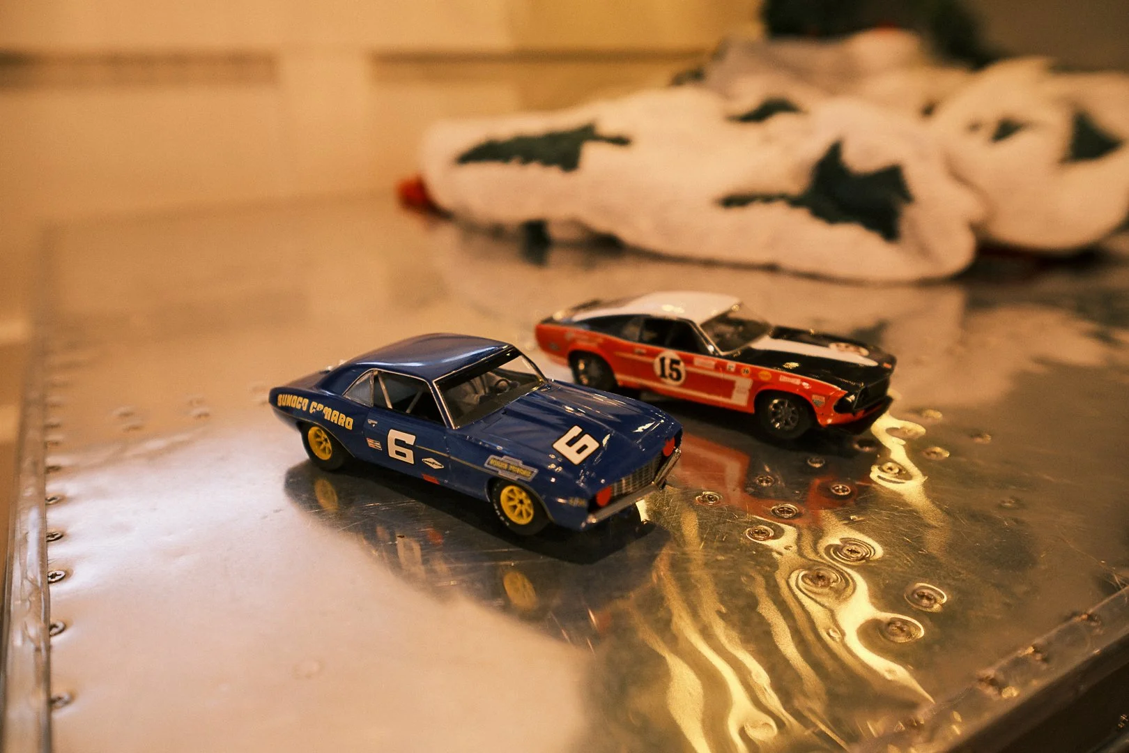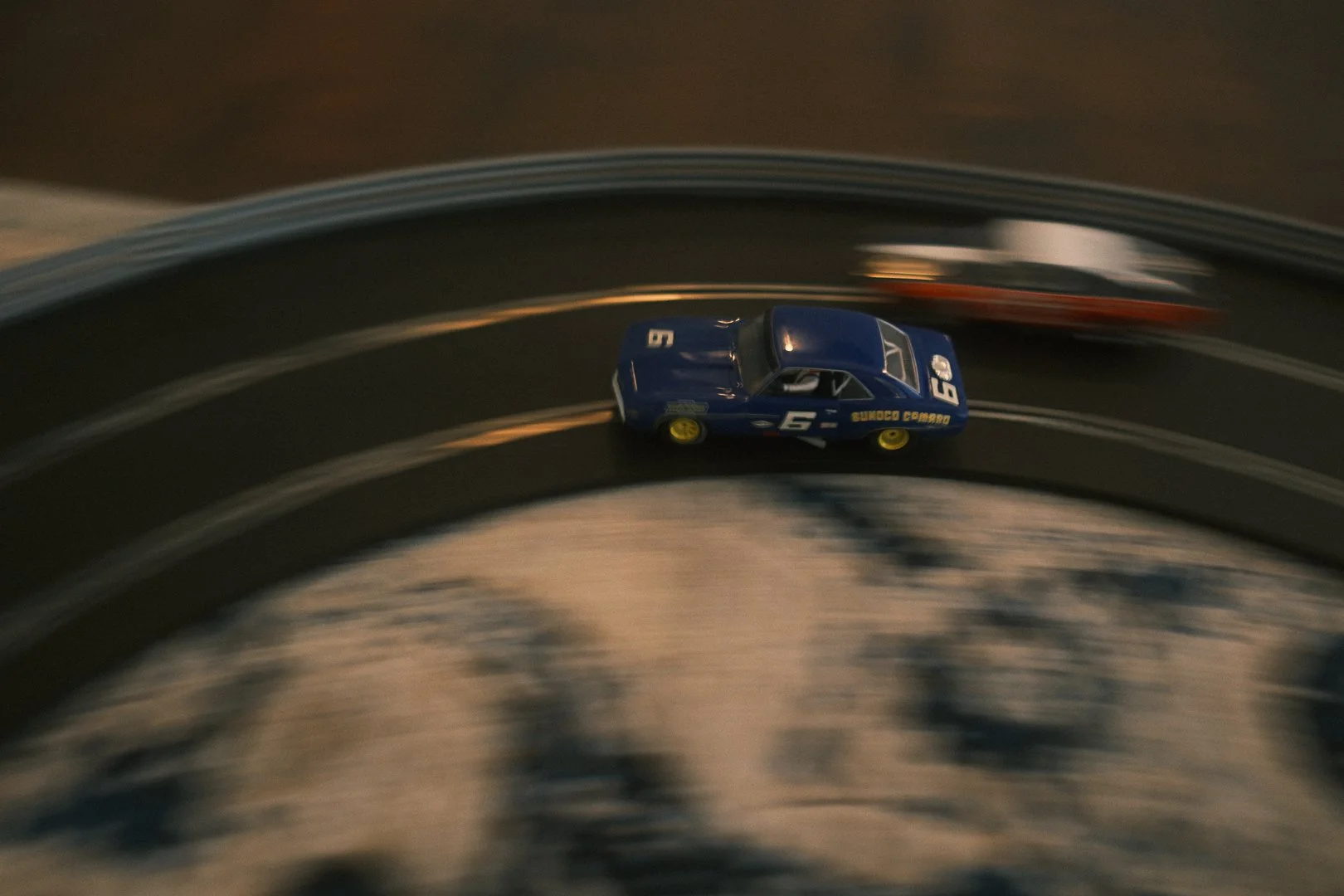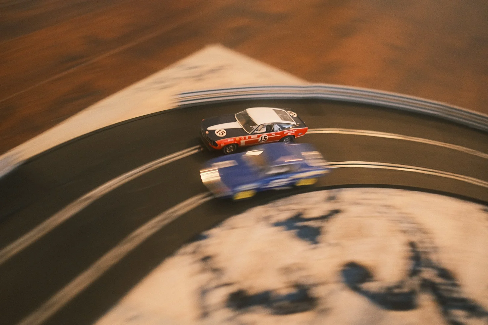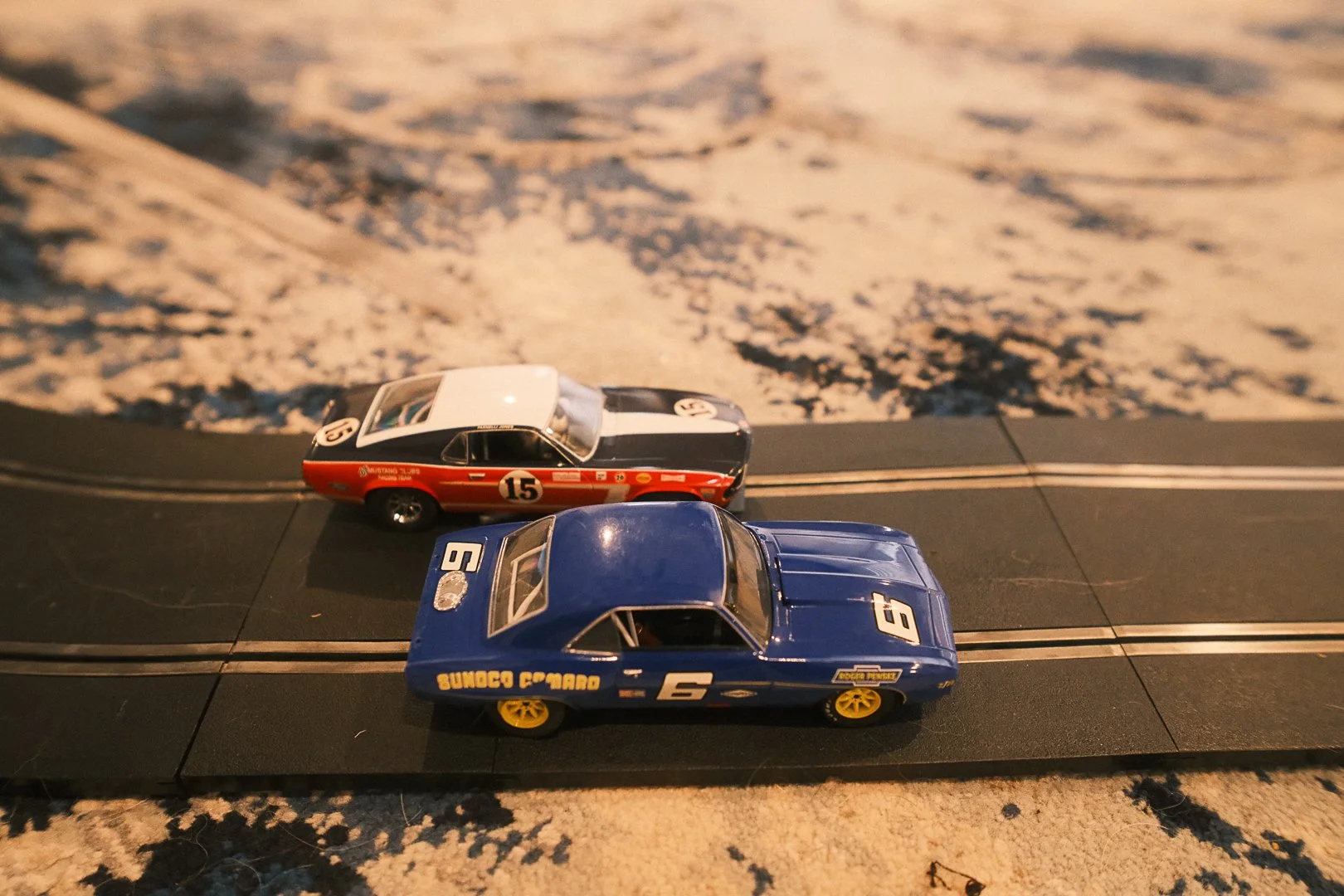 It’s December 26th, time for the annual SCALEXTRIC BOXING DAY TRANS AM CLASSIC From beautiful Family room speedway! Our competitors today are running the wonderful 14 foot scalextric course with high speed straight, sweeping back turn along the bar and the tight hairpin kink at the christmas tree. Braving these corners will be the #6 Camaro in the blue SUNOCO paint scheme that has dominated several tracks through out the series this year! Coming in hot on the Chevy’s heels is the beautiful and proven #15 Boss 302 Mustang representing the Mustang Club Racing team! This car has been settled in and composed all season with back to back wins to begin the year with 2 more in the fall.